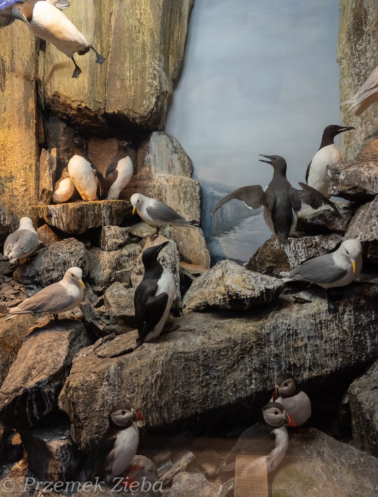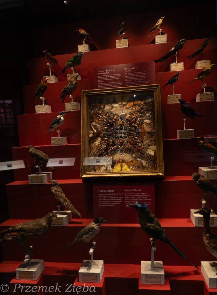 No ale o tym na końcu. Muzeum nie sprawia wrażenia monumentalności jak chociażby jego londyński bardziej sławny odpowiednik. Atmosfera w niektórych wystawach jest przyjemnie ,,wiktoriańska” czyli nawiązuje do ,,gablotowej” ekspozycji muzealnej, bez wydziwiań edukacyjnych, konkursów dla dzieci, zgadywanek etc. Przyjemnie poczuć sie jak w muzeum przed 20 laty. Sama kolekcja zoologiczna jest zbierana od XVIII wieku i to przez cały czas. Jej spora część jest wyeksponowana, ale chętnie bym obejrzał dział zamknięty dla zwiedzających. Musi być imponujący. Trzeba zdać sobie sprawę, że Szwecja od 1814 roku nie angażowała się w żadne konflikty zbrojne, więc i zbiory muzealne nie były zagrożone i tak przetrzebione jak nasze. Co zwróciło moja szczególna uwagę. Przede wszystkim wspaniałe szkielety wielorybów. tego się zbyt często nie ogląda w naszych muzeach. Przynajmniej w takiej ,,koncentracji”