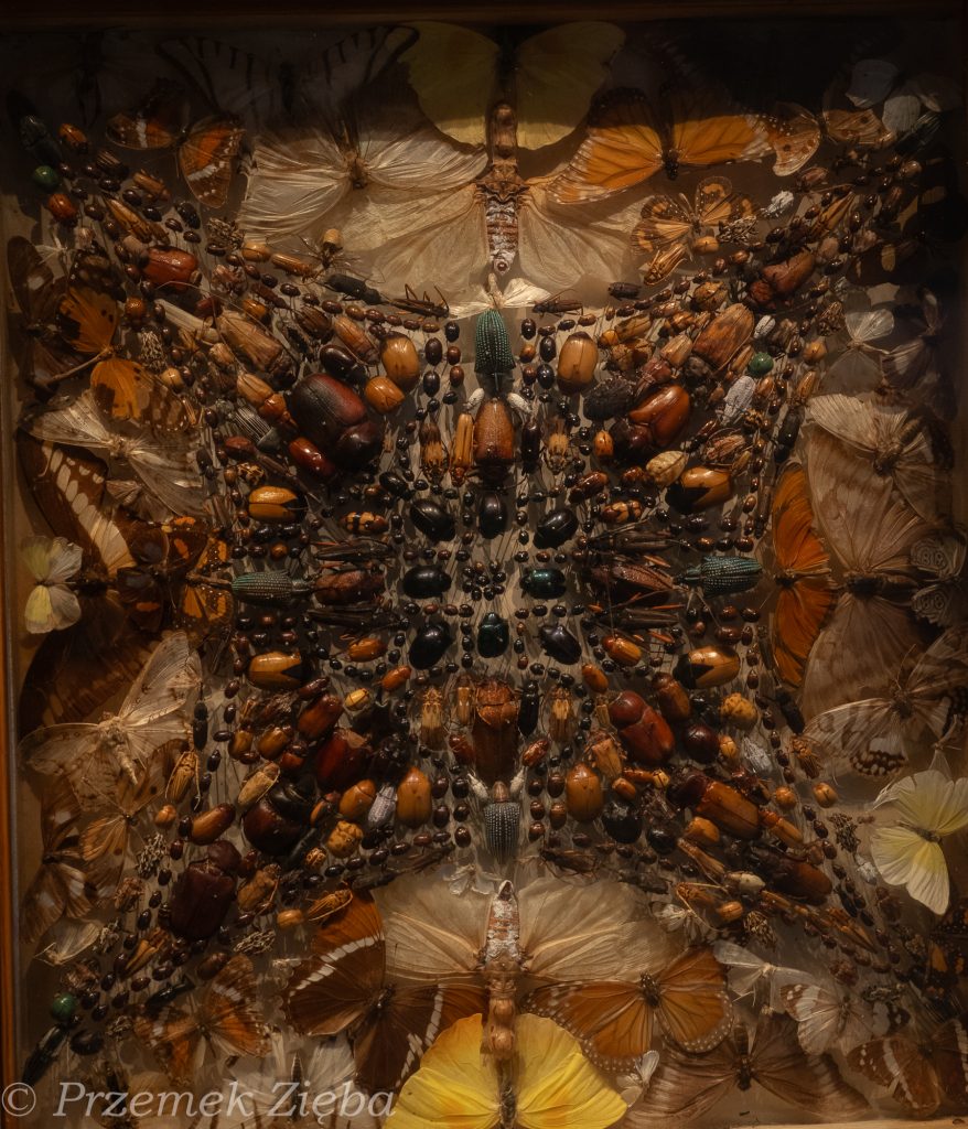 Poza okazami paleontologicznymi zadziwiają aranżacje jak chociażby ta z motylami – poniżej.