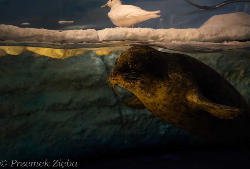Wieloryby znajdują sie tuz obok wystawy dotyczącej regionu polarnego. Fajnie przedstawione sceny ,,dynamiczne” jak chociażby czatujący na fokę niedźwiedź polarny. Takie dynamiczne sceny tez występują kondygnacje wyżej.