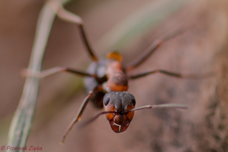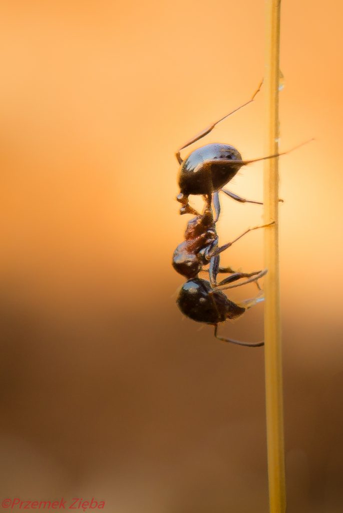 Wydawać by sie mogło, że ruchliwość mrówek kompletnie wyklucza możliwość wykonania poprawnego zdjęcia. Bardziej doświadczeni koledzy mający lepiej opanowany warsztat makrofotografii, twierdzili, że ,,bez kleju sie nie uda” mając na myśli oczywiście przyklejanie mrówek do podłoża, by sie nie przemieszczały 🙂